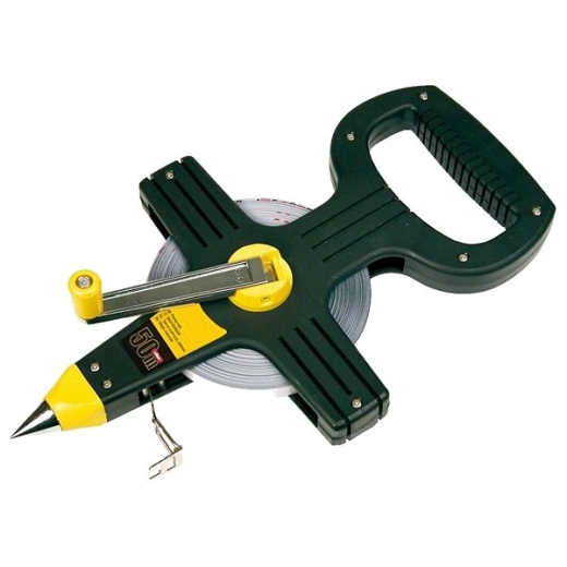 Рулетка Сталь 22702, 50 м – корпус которой изготовлен из прочной пластмассы, предназначена для измерения больших расстояний в открытой местности или в закрытых помещениях. Эргономичная рукоятка гарантирует крепкий восторг, что повышает комфорт работы. Лента изготовлена из стекловолокна. Для удобной фиксации ленты на ее кончике предусмотрена металлическая петля. Открытая конструкция корпуса позволяет удерживать чистую ленту. Предотвращает блокировку ленты в закрытом картридже при загрязнении песком или землей. Шкала измерений: метрическая система (м, см, мм).