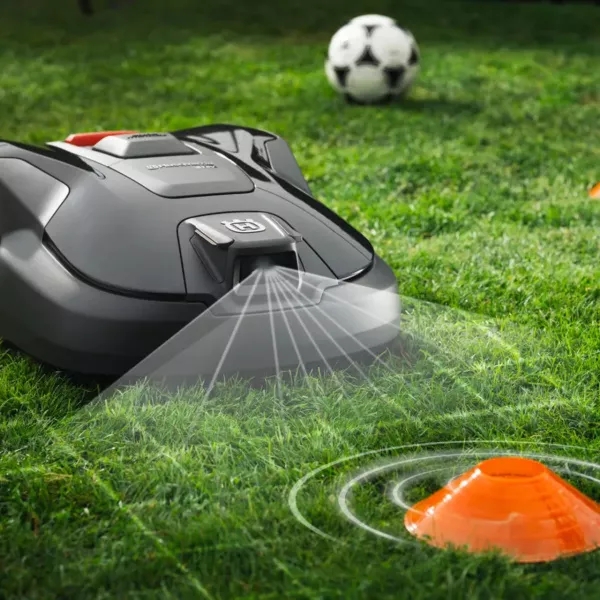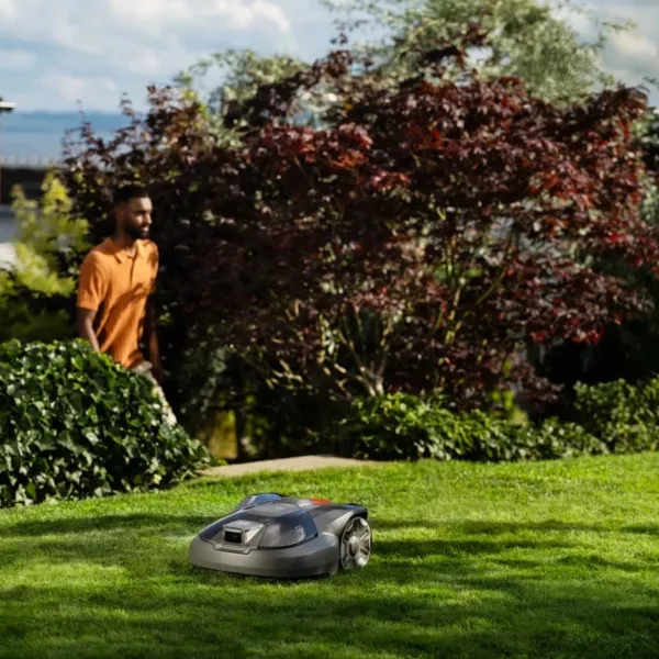 - Тихая работа (только 63 дБ), автоматический возврат на зарядную станцию и управление через приложение Husqvarna Automower Connect (Wi-Fi, Bluetooth).