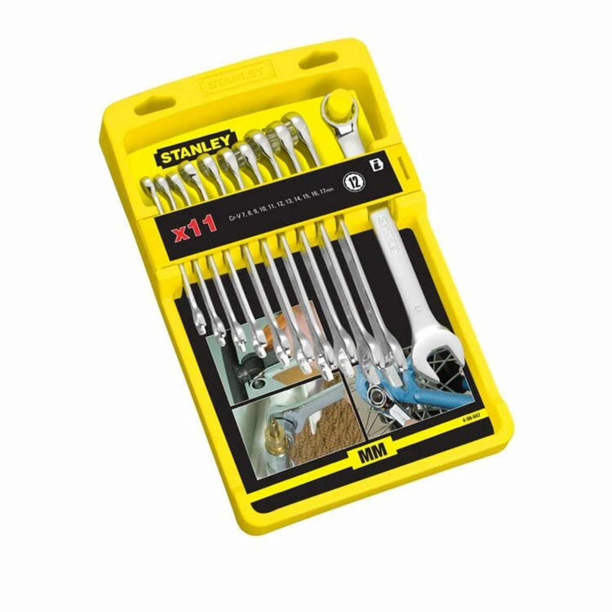 Ключи рожково-накидные STANLEY 4-94-647 - набор 11 шт. — это профессиональный набор комбинированных (рожково-накидных) ключей метрических размеров, относящийся к линейке инструментов Stanley.