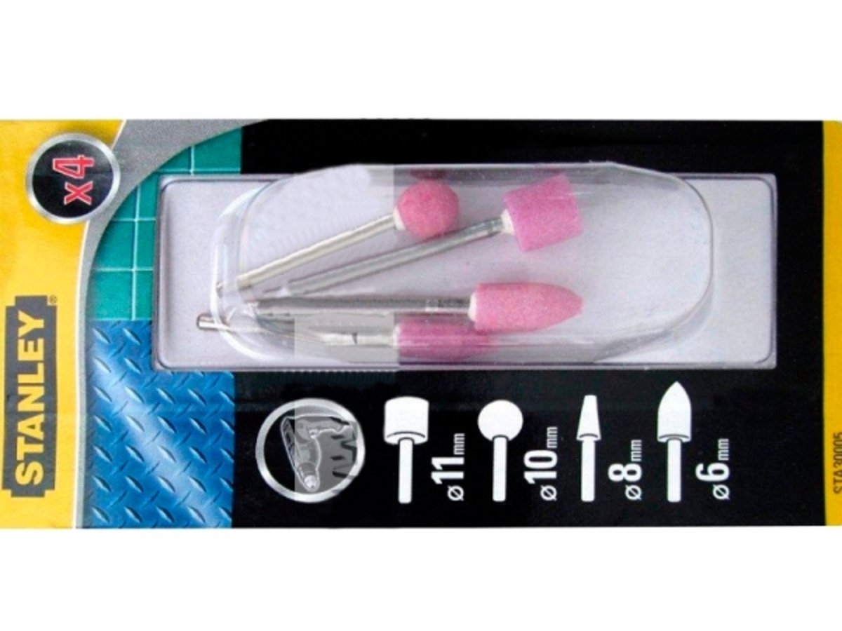 Профессиональный набор из 4-х точильных/шлифовальных камней на хвостовике 3 мм от STANLEY – идеальное решение для точной обработки металла, керамики, стекла, пластика и других жестких материалов.