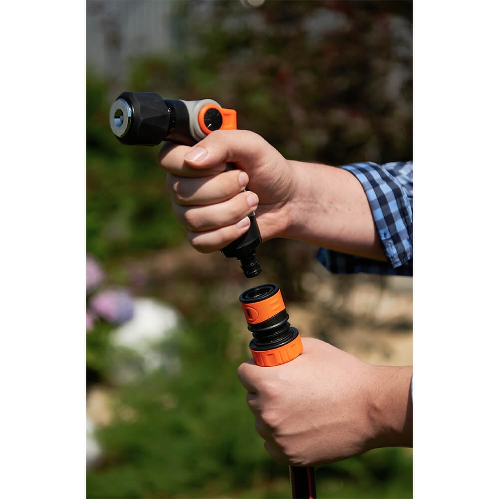 Благодаря двум режимам работы вы будете легко переключаться между мощной направленной струйной для полива корней деревьев и кустов и мягким конусным распылением (душем) для деликатных цветов, рассады и газона.