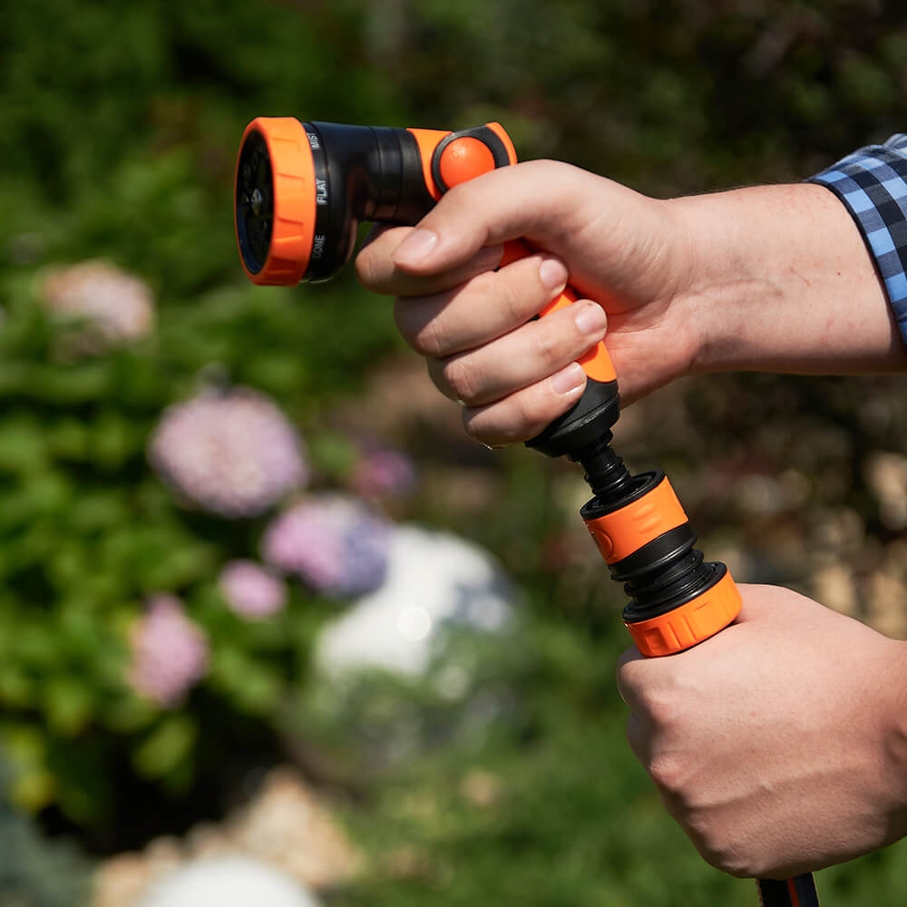 Пистолет-распылитель SEQUOIA SWPSN8 – надежный инструмент для полива с 8 разными режимами распыления. От мягкого душа для нежных цветов и рассады до мощной струйной для быстрого полива газона или мытья садового инвентаря.
