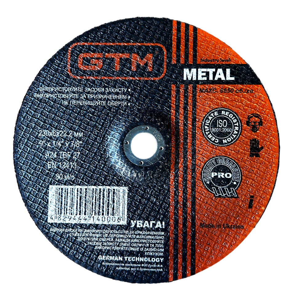 Круг зачисний GTM 11812 230×6×22 сталь (тип Т27) — надійний абразивний інструмент для професійної та побутової роботи.