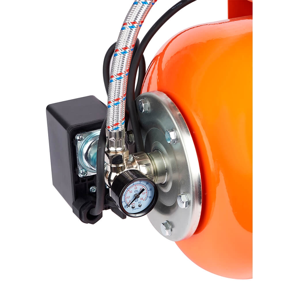 Завдяки механічному реле тиску станція працює повністю в автоматичному режимі: вмикається при падінні тиску та вимикається, коли система заповнена. Гідроакумулятор на 19 літрів накопичує запас води під тиском, зменшує частоту циклів роботи насоса та захищає двигун від частих пусків.