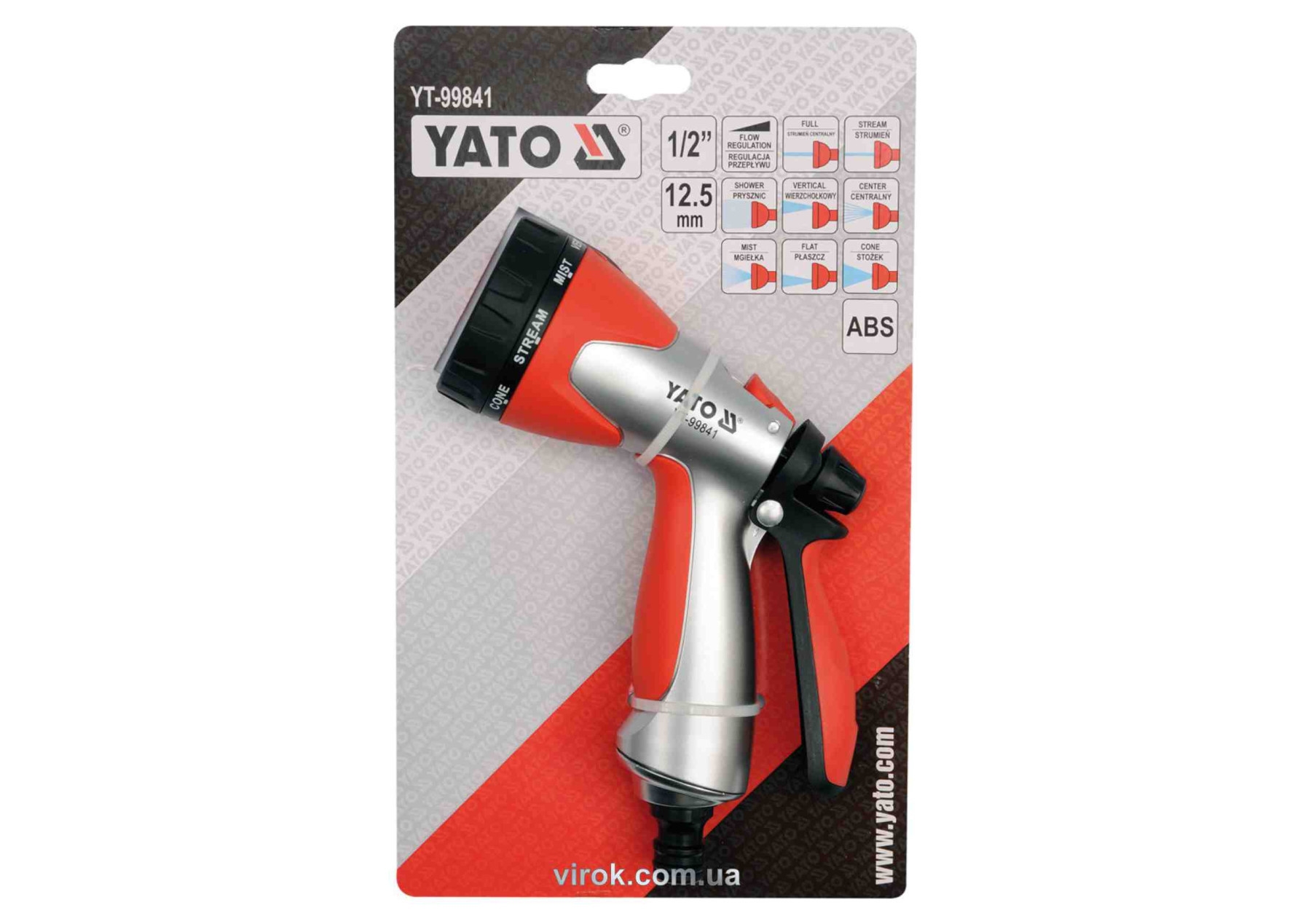 Зрошувач-пістолет 8-режимний YATO YT-99841 до шлангу 1/2", ABS-пластик